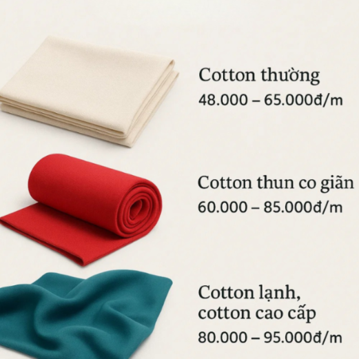 - Cotton thường: khoảng 48.000 – 65.000đ/m