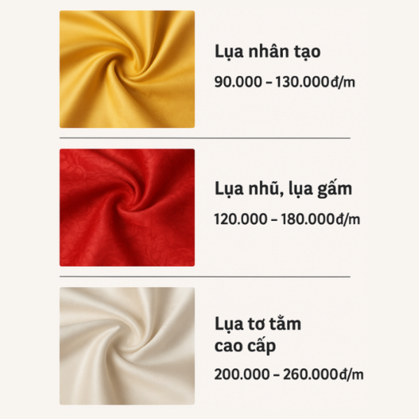 - Lụa tơ tằm cao cấp: 200.000 – 260.000đ/m