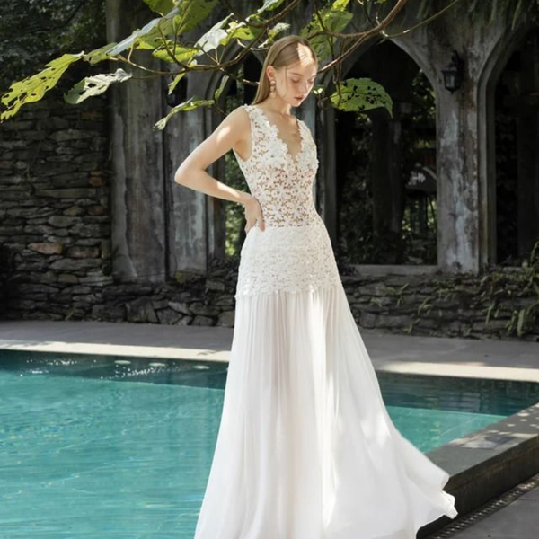 - Váy cưới & đầm dạ hội: Không thể thiếu trong các thiết kế mang hơi thở nữ tính. Những lớp ren phủ nhẹ lên thân váy giúp cô dâu hoặc quý cô trở nên lộng lẫy mà vẫn giữ được nét thanh nhã.
