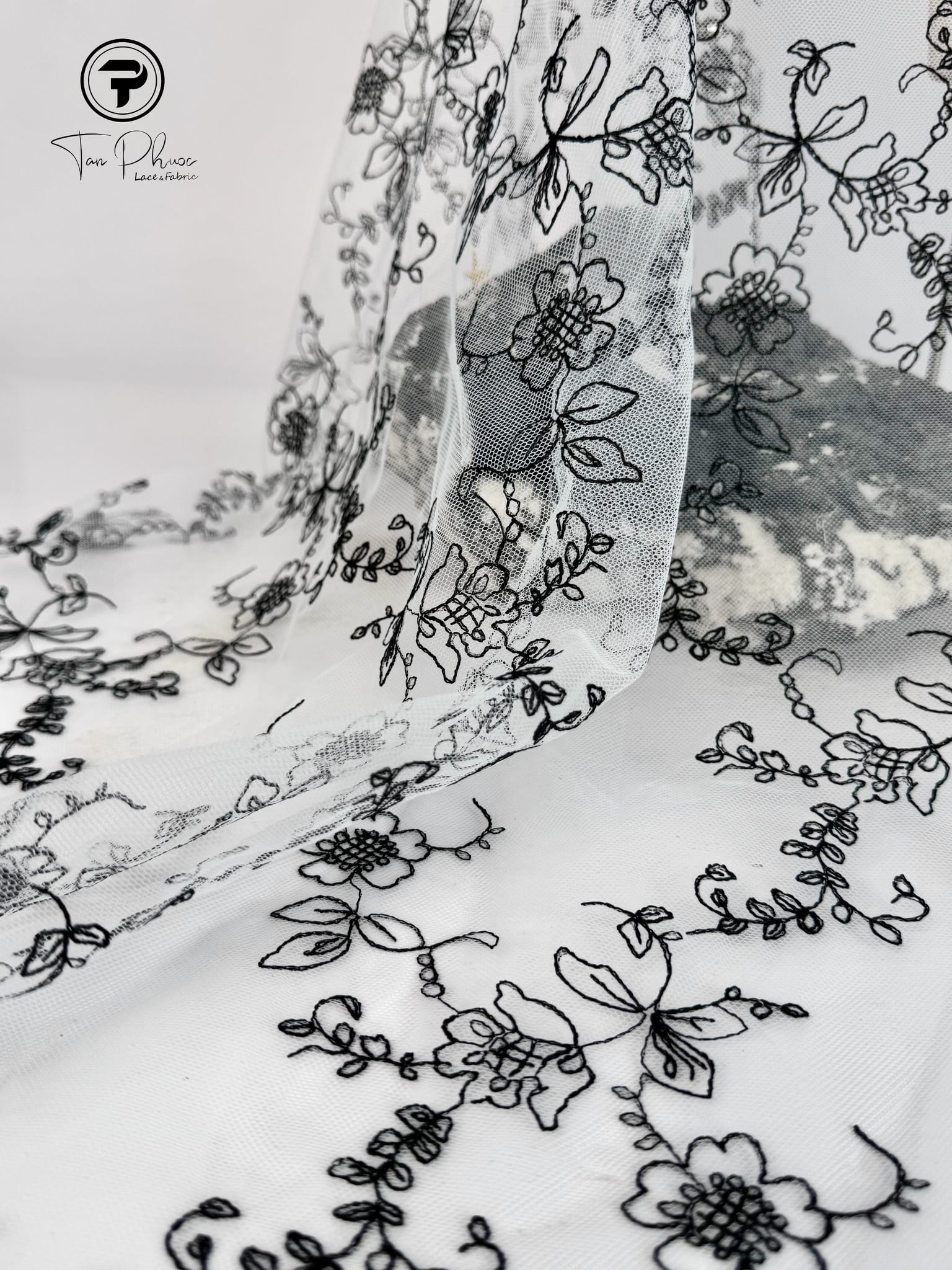 Vải lưới tổ ong thêu hoa